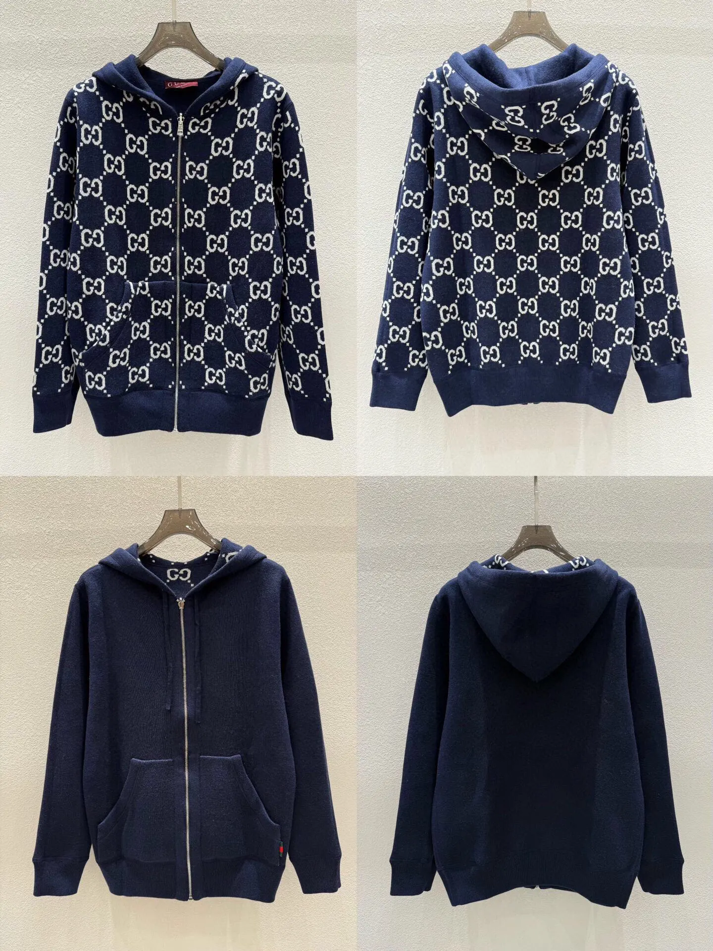 Gucci经典款 双面可穿不同风格👍双C提花羊绒混纺连帽毛衣外套 码数 S M L XL