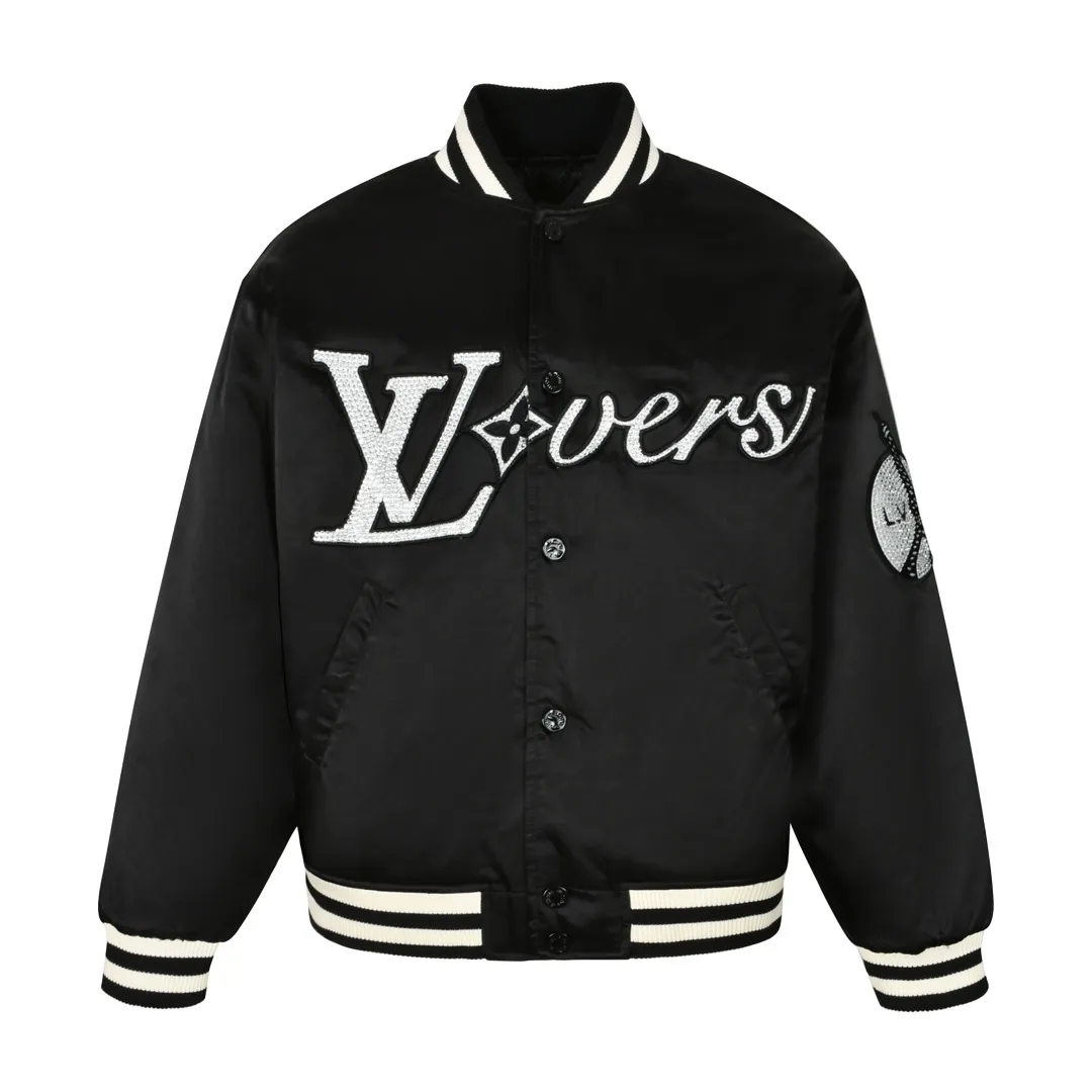 24SS LV 水钻绣章夹棉棒球服(黑色)