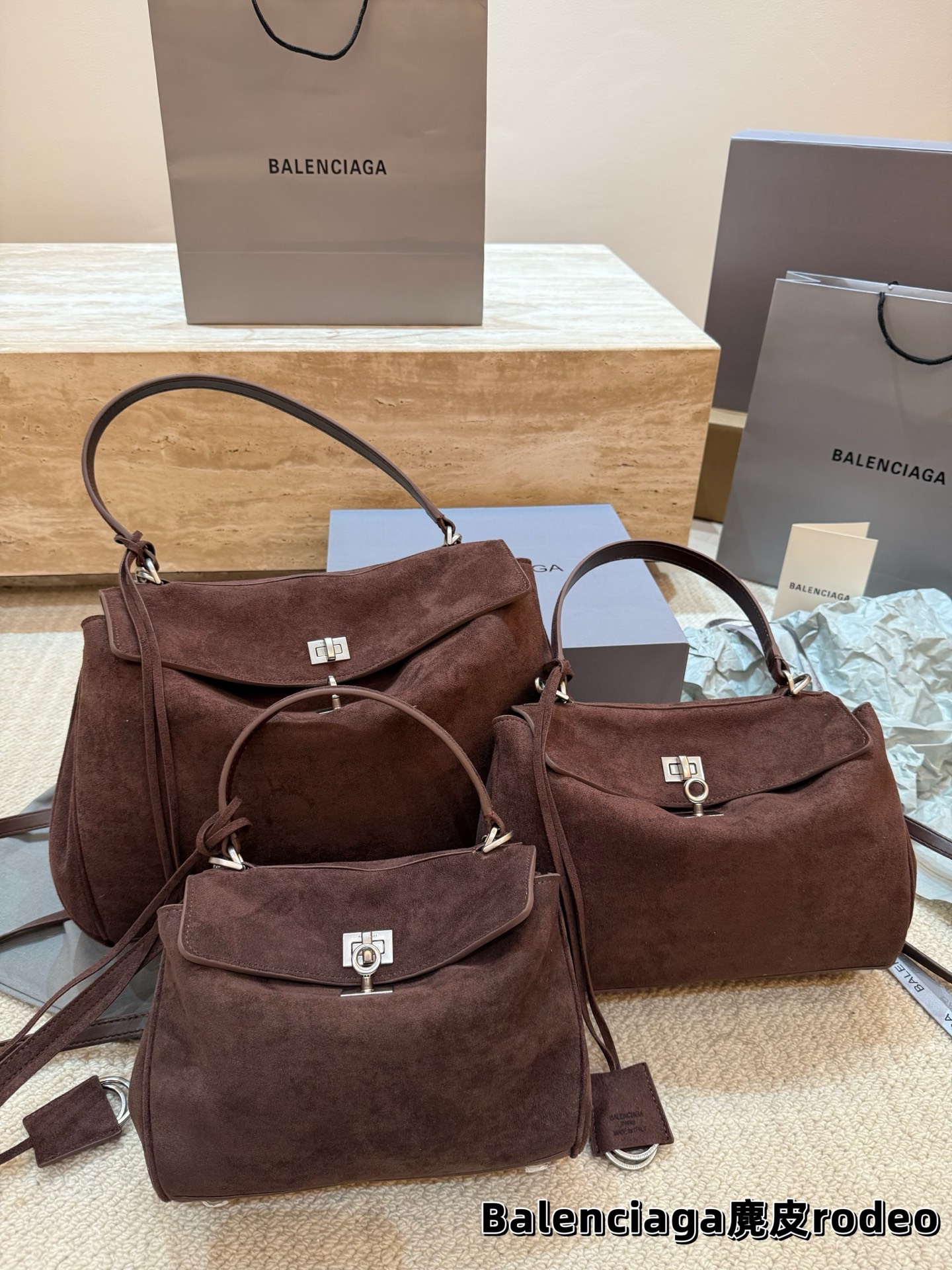 Balenciaga RODEO Suede Tote Bag (Silver Hardware) Sizes: Medium 35*23 cm, Small 28*20 cm, Mini 22*17 cm