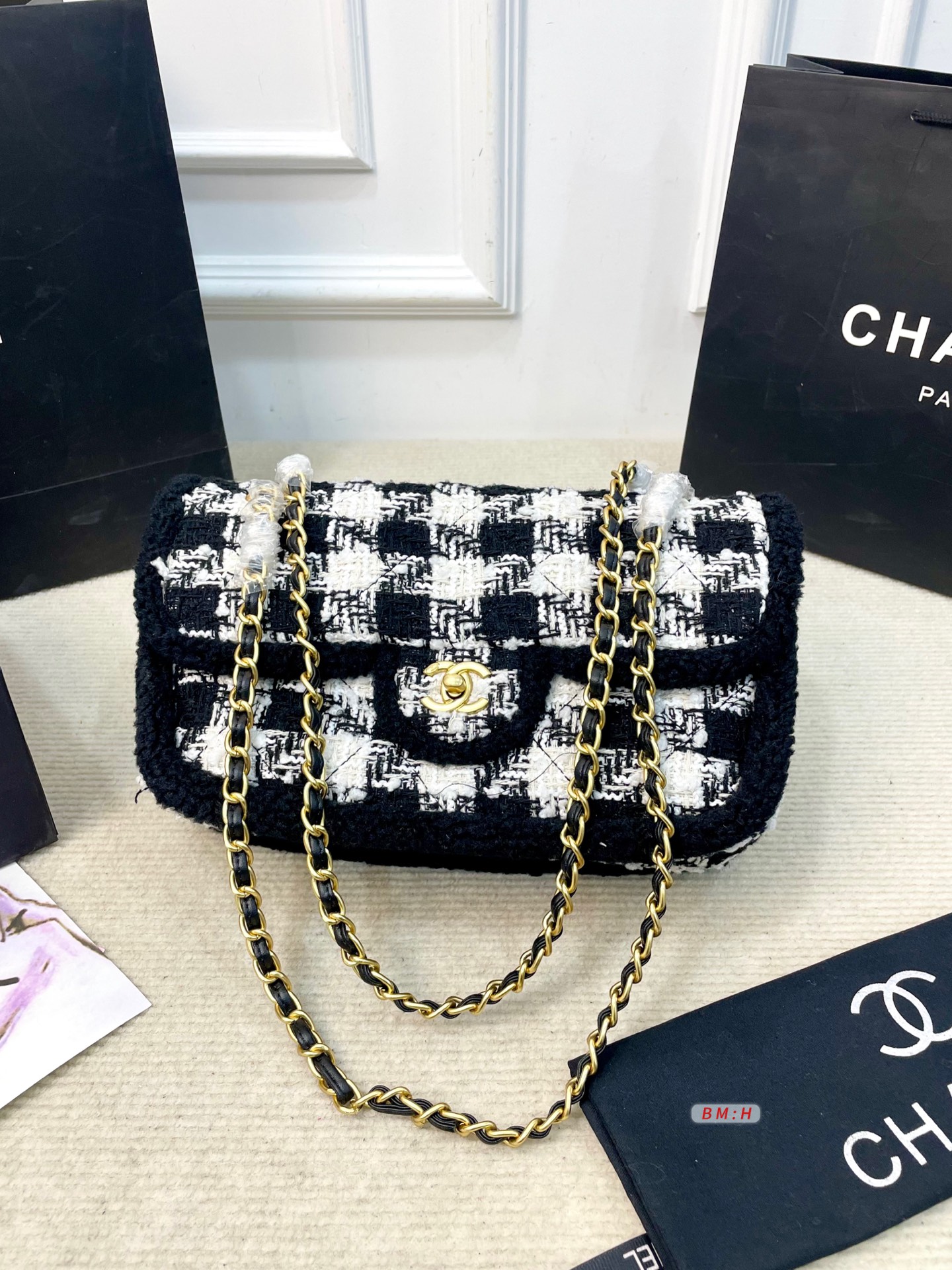 Chanel CF series 25N black and white houndstooth tweed bag. SIZE: 29*10*20