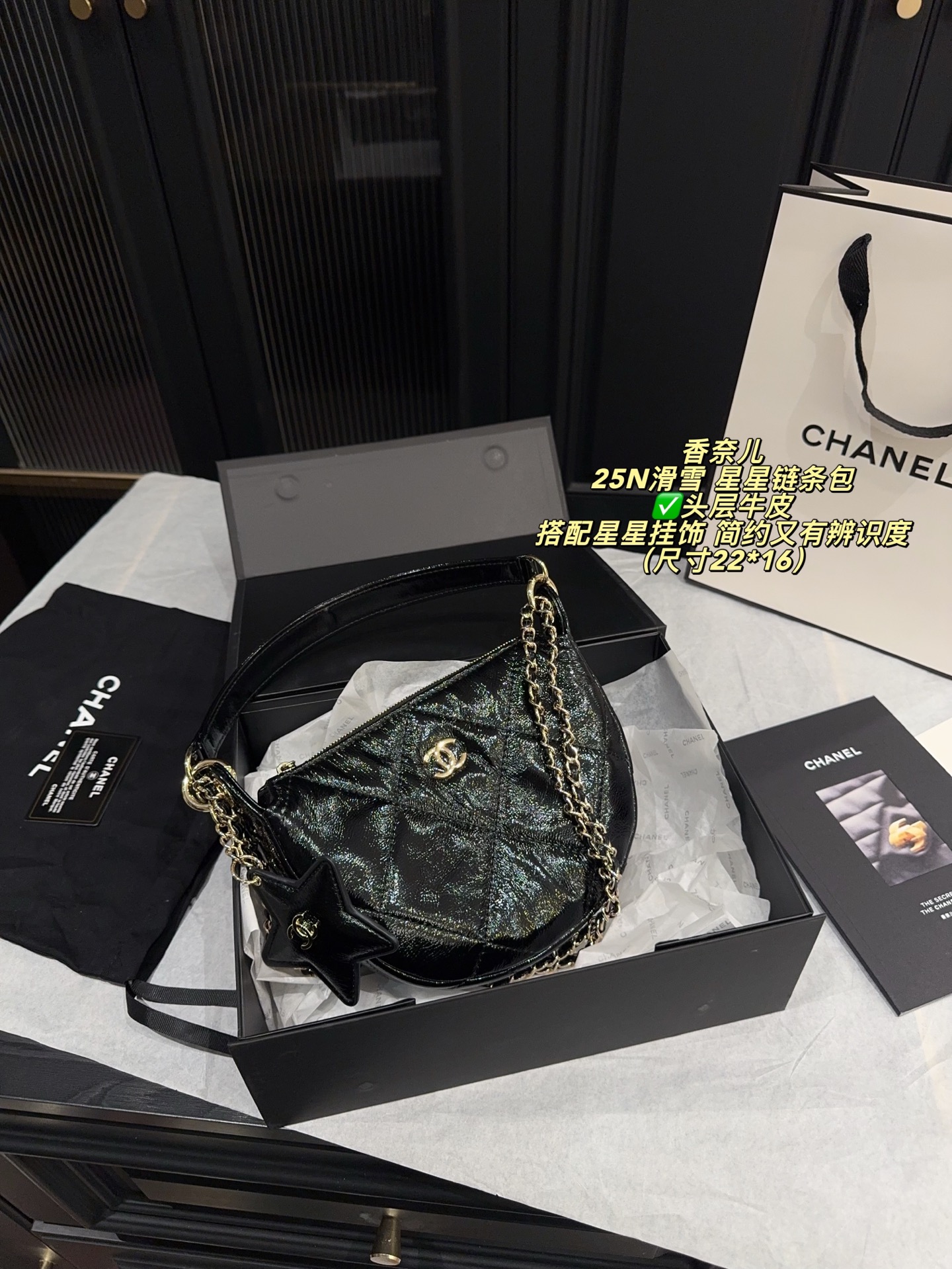 Chanel 25N Skiing Star Chain Bag, Calfskin Leather, SIZE: 22*16CM
