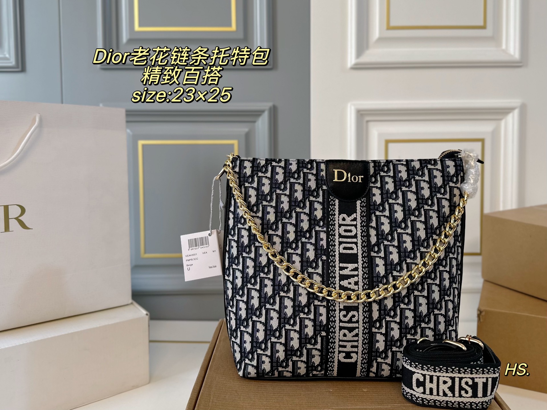 DIOR size: 23×25 cm, chain tote bag