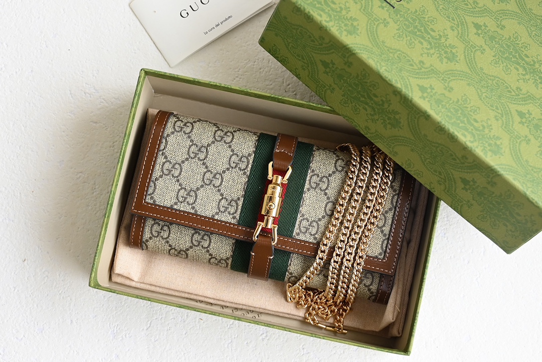 GUCCI Jackie 1961 series chain bag, can also be used as a wallet. Size: 19 × 10 × 3.5 cm