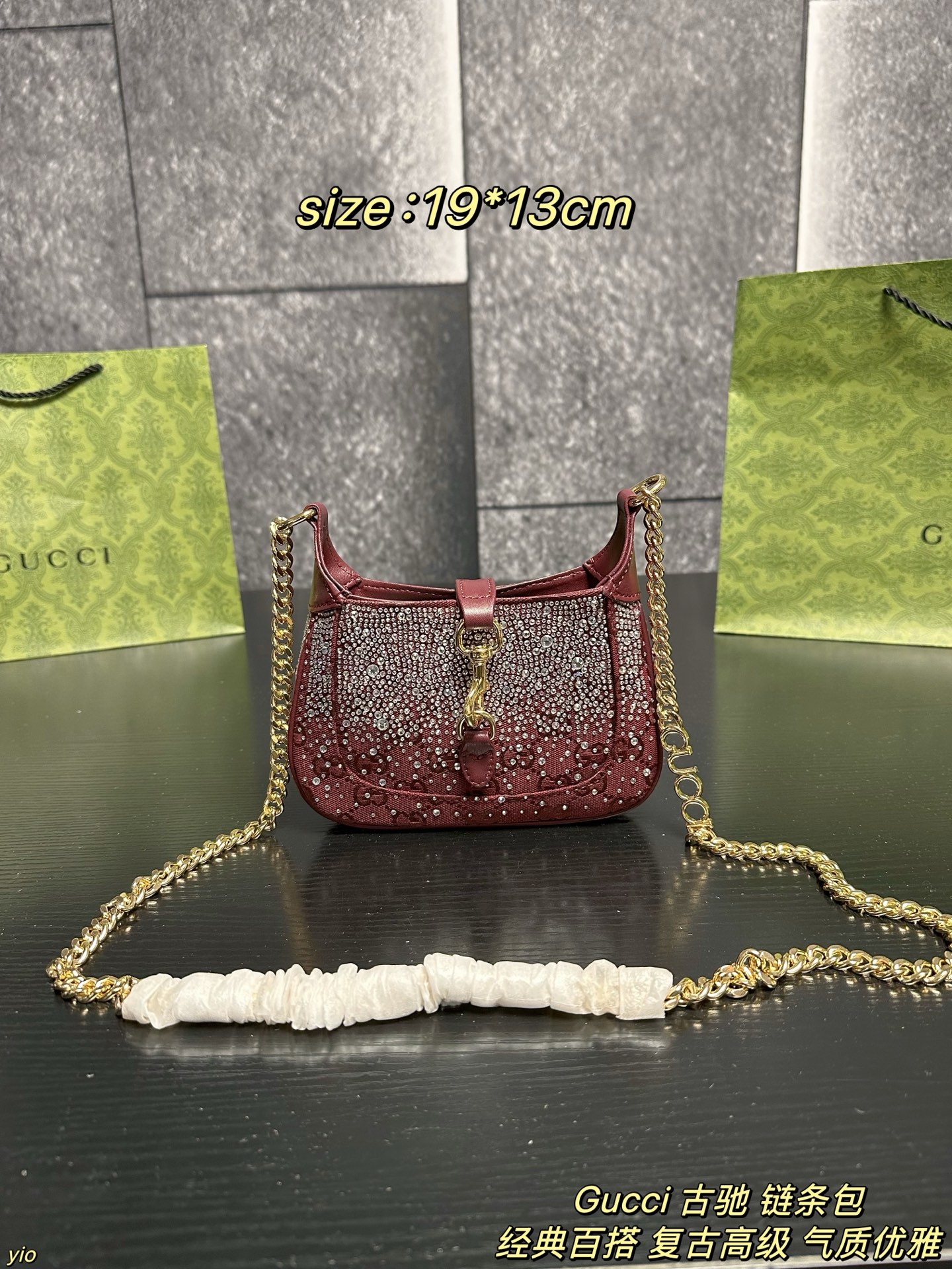 Gucci chain bag, red with full crystal embellishments, Jackie style. Size: 19*13cm