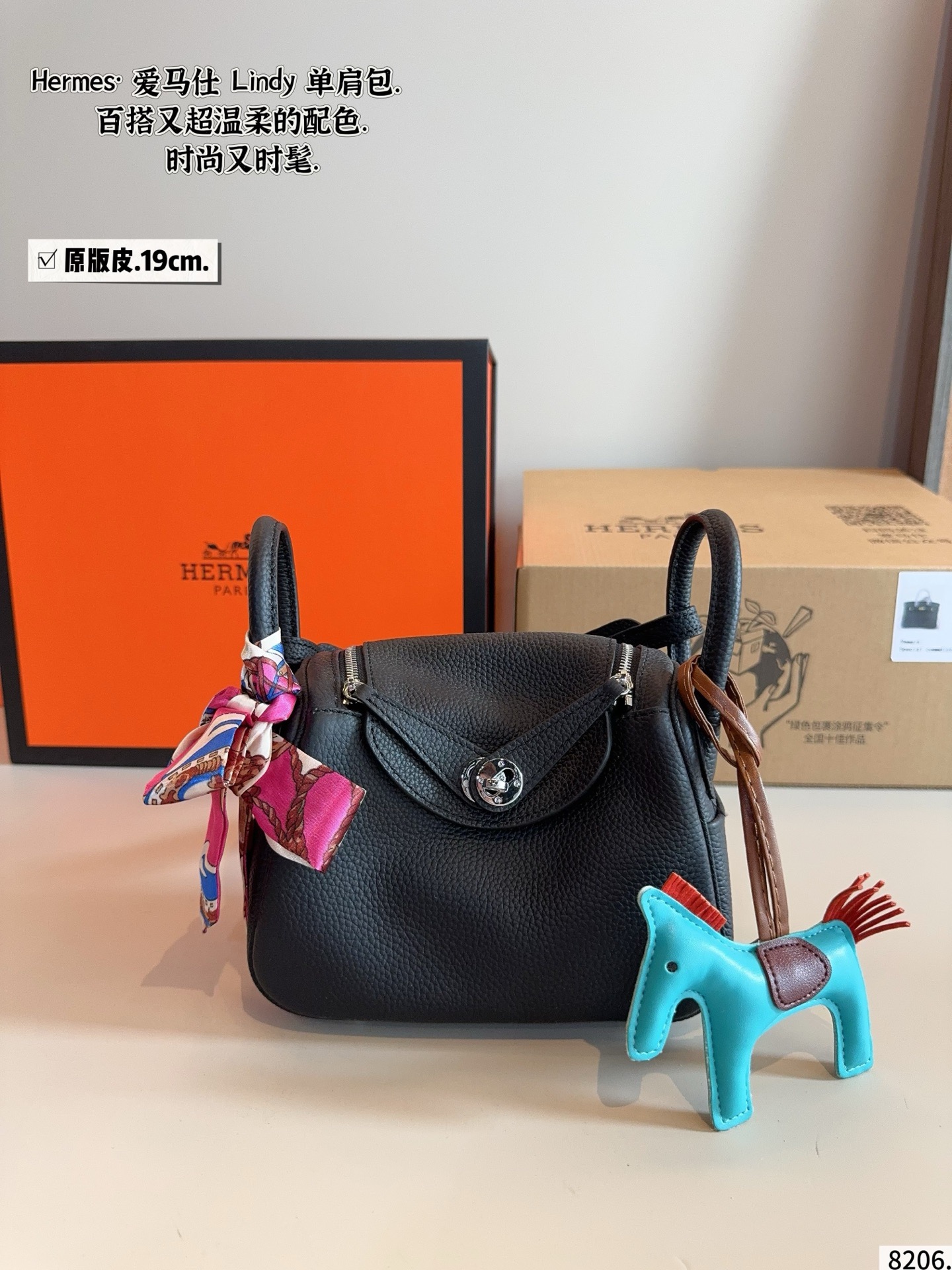 Hermès silk scarf + horse charm, SIZE: 27×16CM, Medor Bag