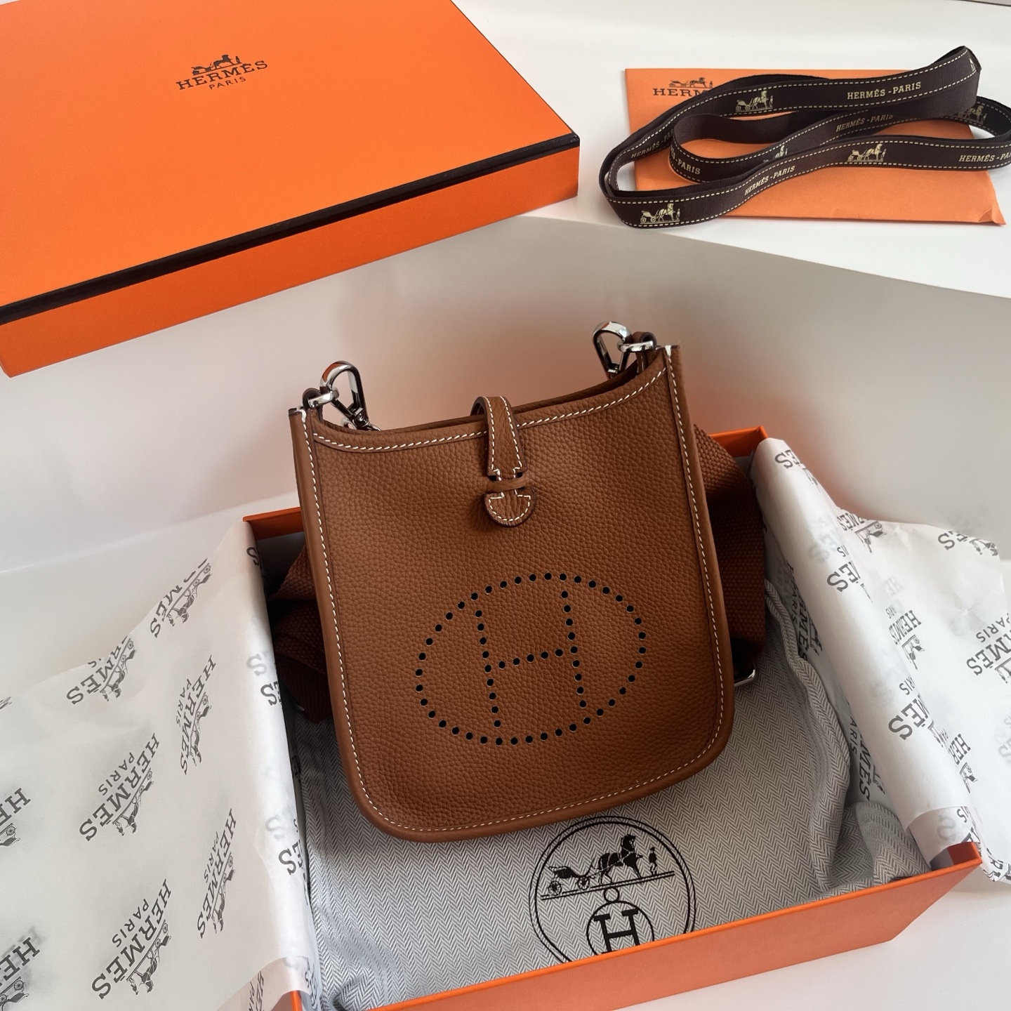 Hermès Mini Evelyne, SIZE: 16 × 16.5 × 8 cm....