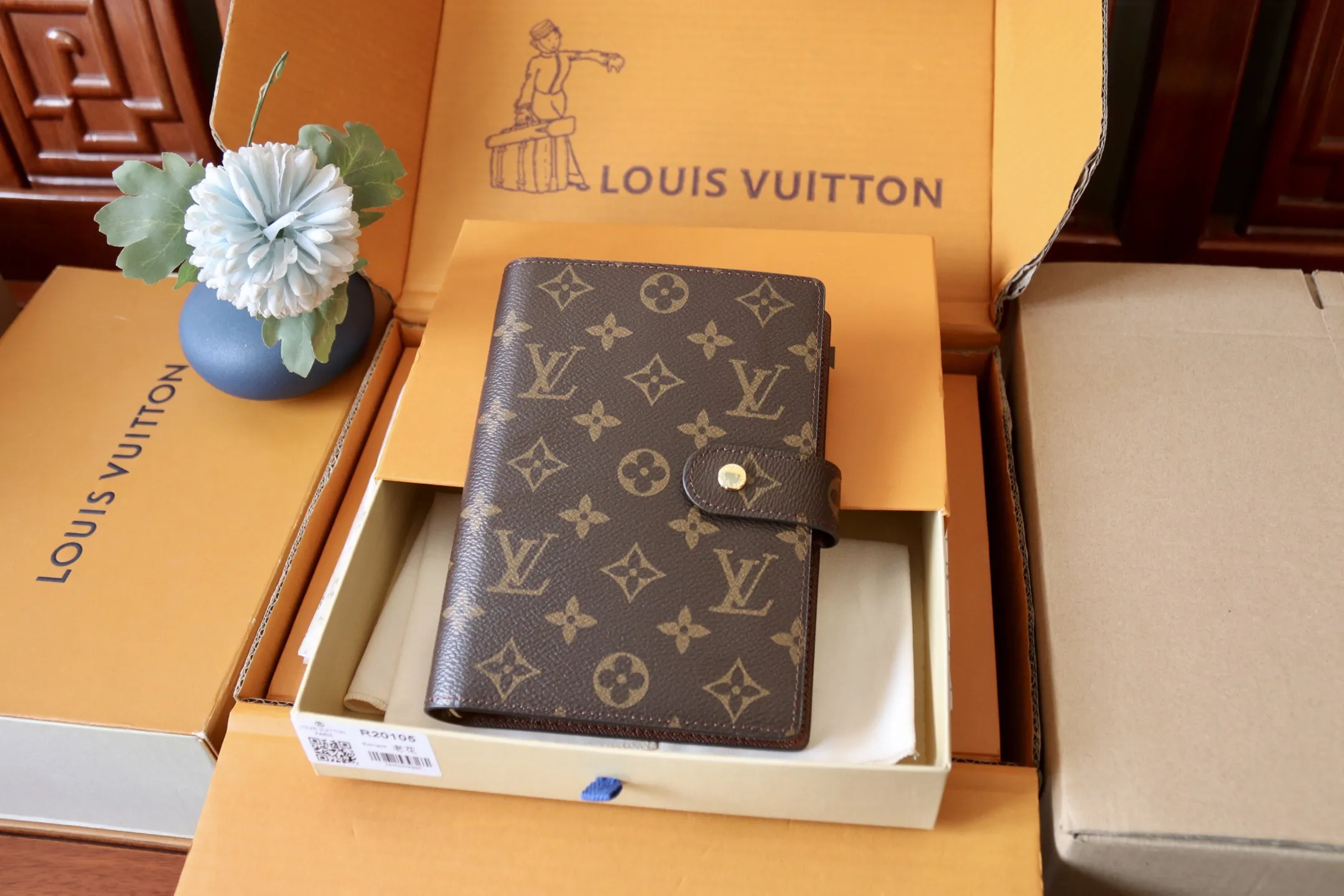 LV Small Ring Agenda Cover: 6-ring binder with 3 card slots, supports replaceable planner/address book inserts. SIZE: 9.9*14CM