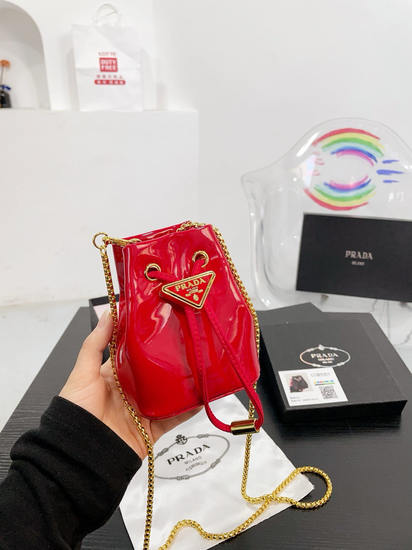 PRADA SIZE: 10*13CM Mini sequined bucket bag. So cute!