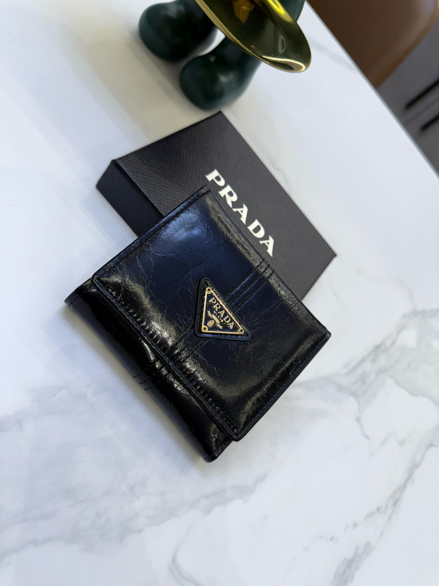 PRADA SIZE: Long 19x10 cm, Short 12x10 cm. Men's Saffiano leather bifold wallet (long and short versions).