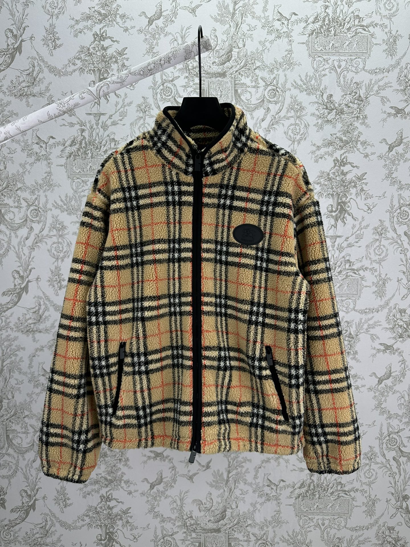 巴宝莉 25ss新款格纹羊毛羊绒混纺绒头夹克