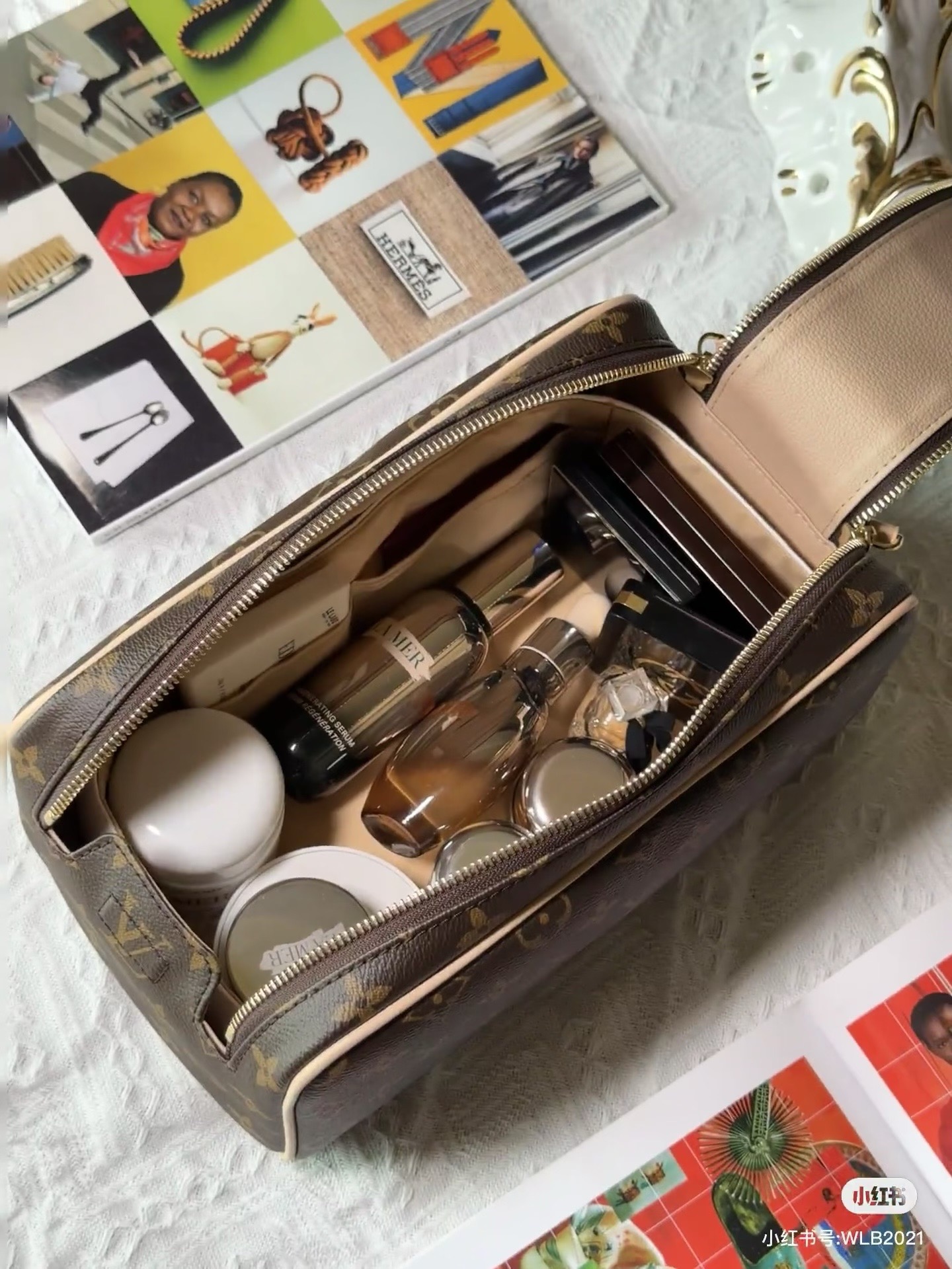 高版本💰145 L家时尚化妆包再次出货,永远都不会过时,女士们的必备品,男士们,女士们,通通可以使用,球星内马尔及各大牌明星,酷爱的一款双拉链的手包➕化妆包,经典老花,面料采用:进口原版PVC面料,尺寸 :27 14cm